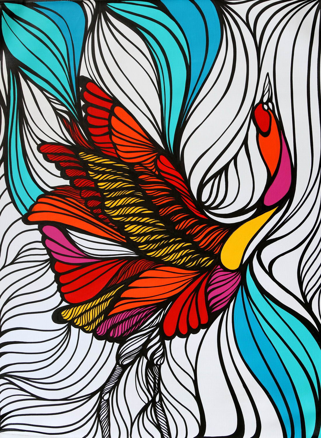 Bruno Big é um artista multidisciplinar e carrega consigo a paixão pelas mais variadas técnicas. Para esta mostra, levou telas, ilustrações e gravuras.