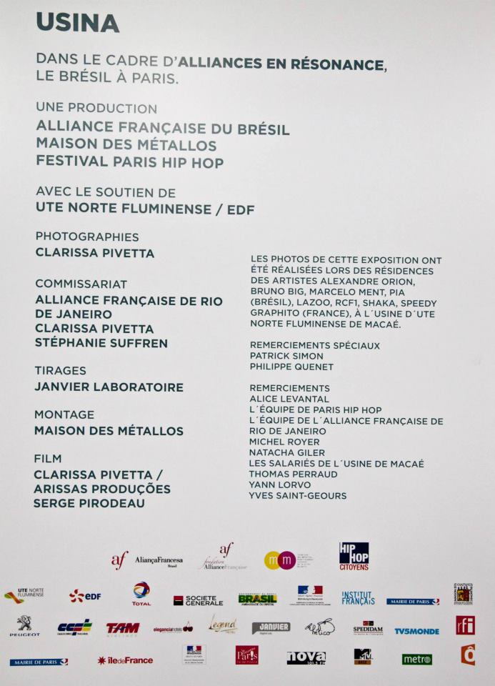 Expo Paris - Usina Um dos artistas envolvidos no projeto "Usina" que gerou a exposição de fotografa Clarissa Pivetta no Maison des Metallos em Paris. Previous article: Mitologias Particular Ant Next article: Masters of Street Art Próximo