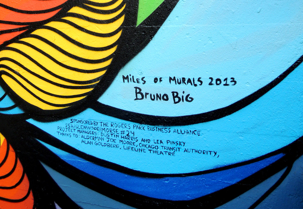 Mile of Murais 2013 Mile of Murals 2013 Artist: Bruno Big Sponsored by the Rogers Park Business Alliance SSA Clark/Glenwood/Morse #24 Project Managers: Dustin Harris and Lea Pinsky Thanks to: Alderman Joe Moore Chicago Transit Authority Alan Goldberg Lifeline Theatre Previous article: Artecore 2014 Ant Next article: Fashion Business 2012 Próximo
