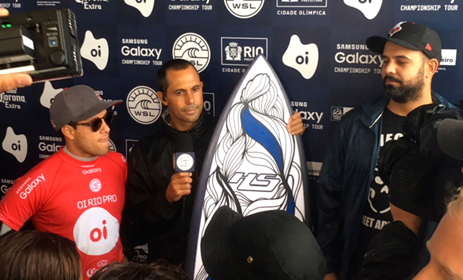 Bruno Big pintou, durante o campeonato no Rio de Janeiro, uma prancha de surf para o campeão mundial Adriano de Souza. A ação foi transmitida ao vivo pelo site oficial do evento.